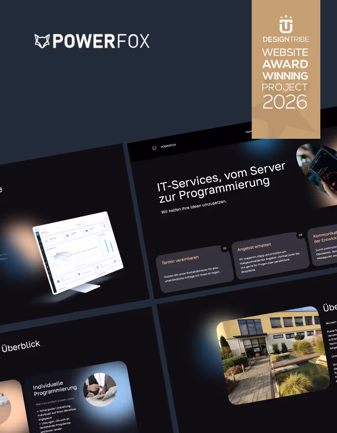 Powerfox überzeugt als Digitalpartner mit klarem Prozess von Anfrage bis Abnahme. Individuelle Softwareentwicklung und eigenes Produktportfolio unterstreichen die technische Kompetenz in aufgeräumter Seitenstruktur.